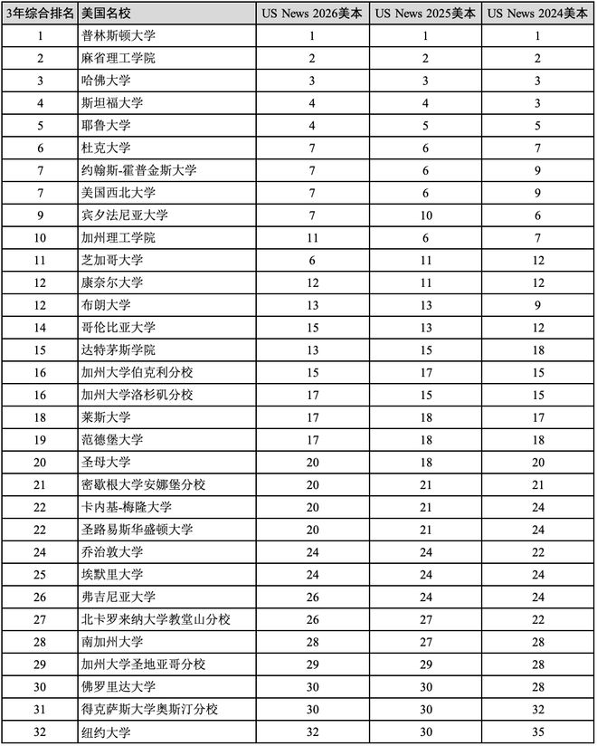 2025年9月23日,US News发布2026年度美国大学本科院校排名,我汇总疫情后3年(2024—2026年度)US News美本排名前30院校榜位变化情况,并引述US News官网对使用排名的看法。